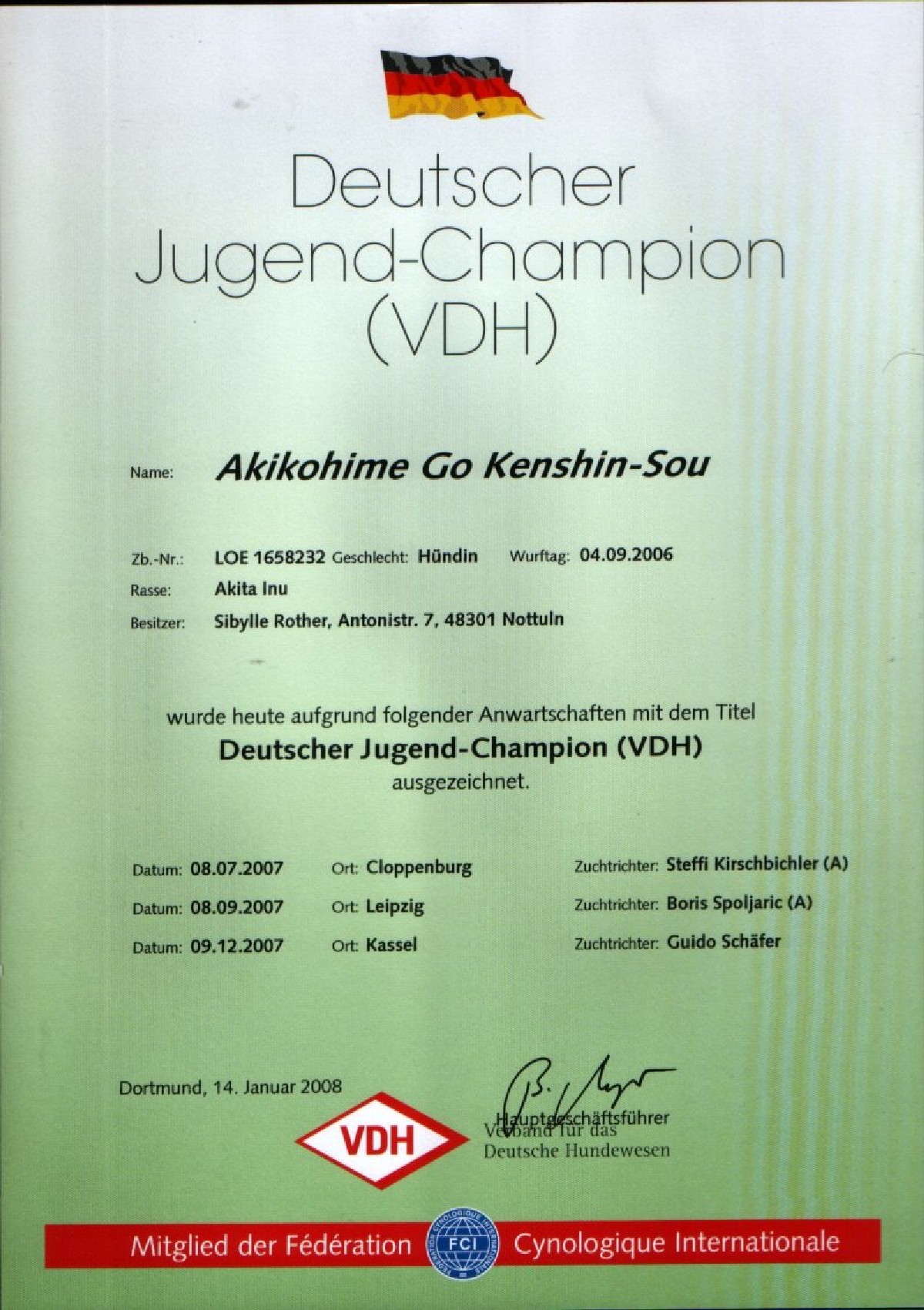 Akikohime nat. Leipzig Beste Hündin...