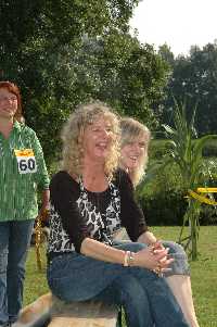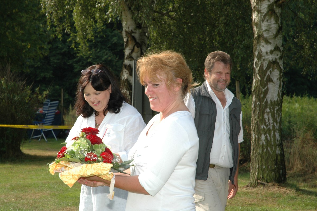Petra bekommt vor der Schau Geburtstagsblümchen...