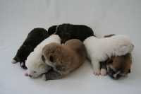 Am 17.01. warf Siri 2 rote, 2 gestromte und 2 weiße Welpen.
