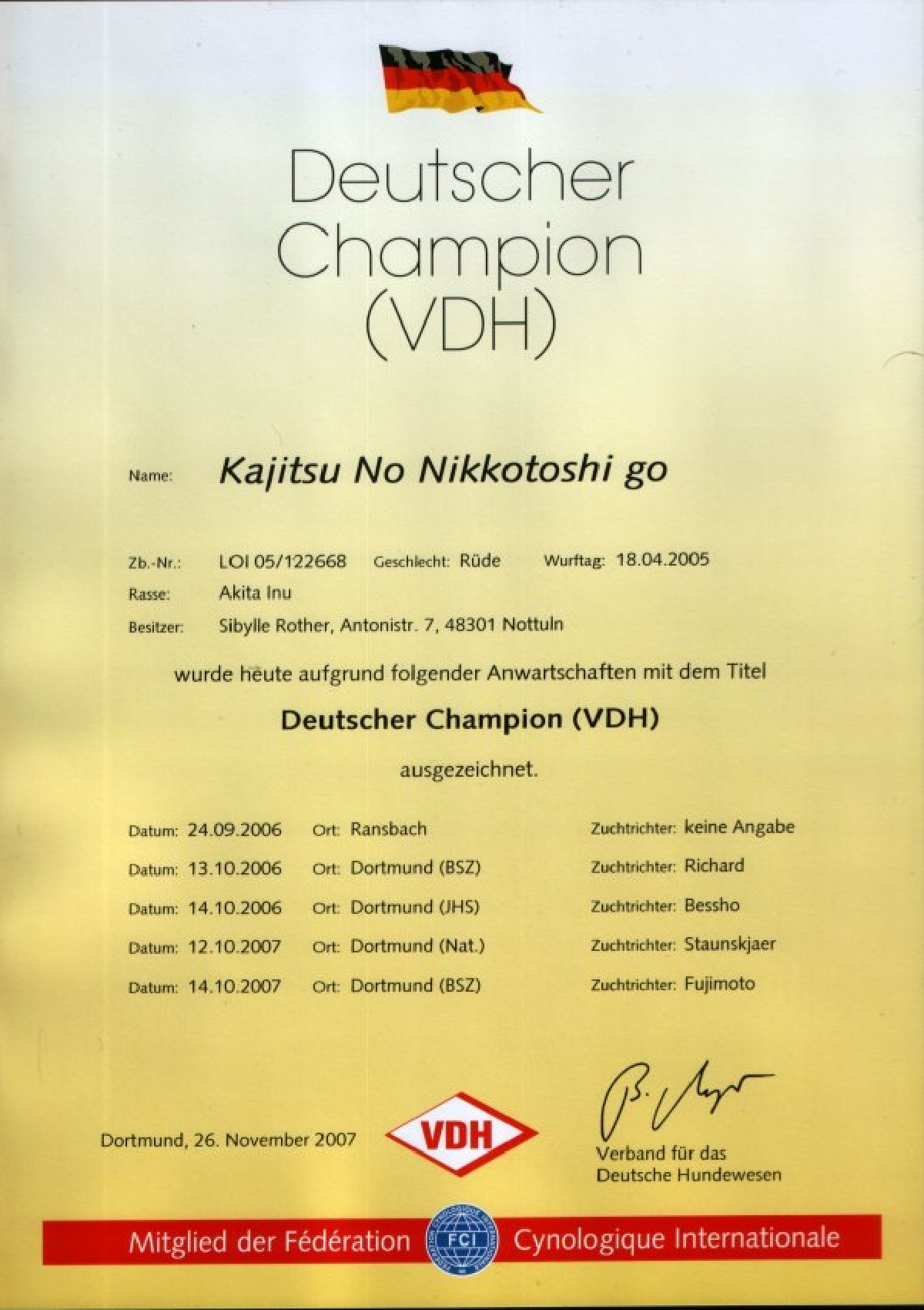 Bester Akita auf der Clubschau in Ransbach-Baumbach, Richterin B. Nyberg